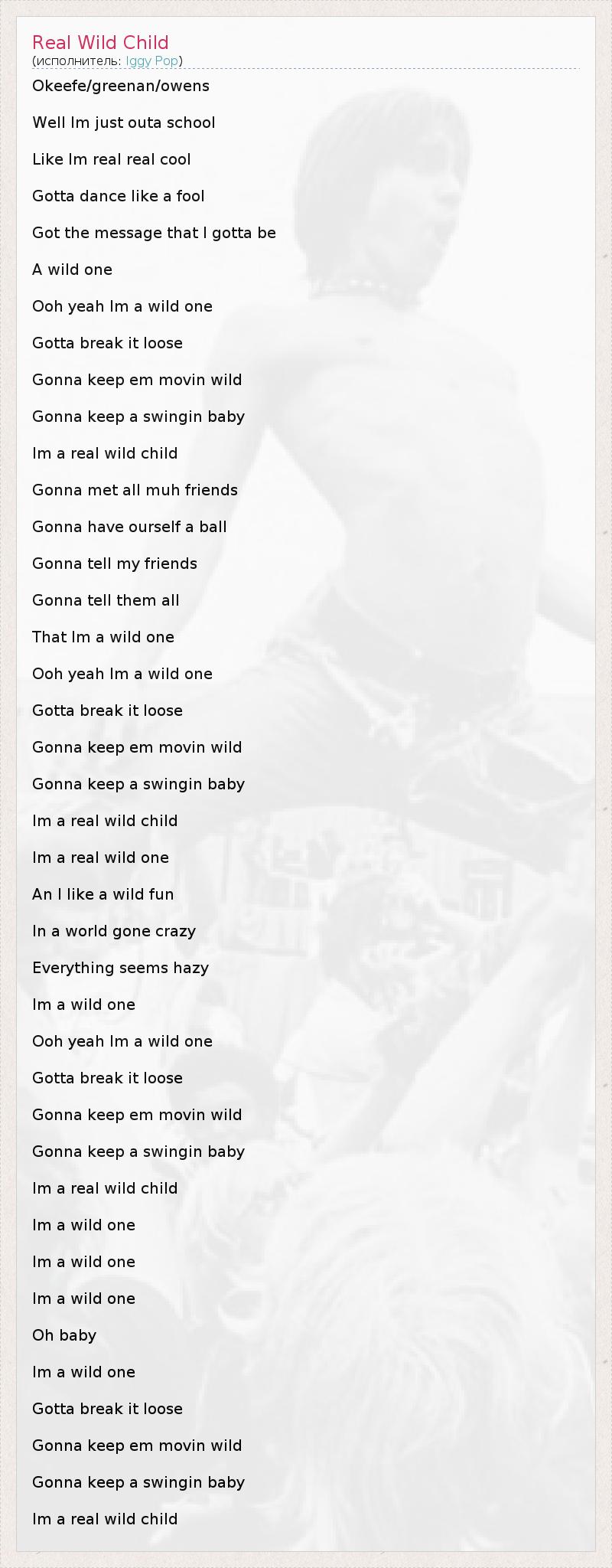 А как ты думаешь, о чем песня "Real Wild Child" ?