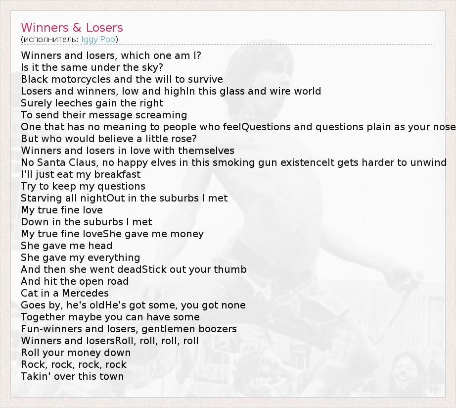 А как ты думаешь, о чем песня "Winners & Losers" ?