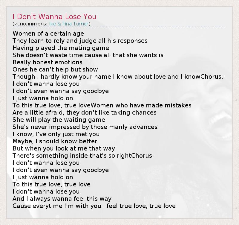 А как ты думаешь, о чем песня "I Don't Wanna Lose You" ?