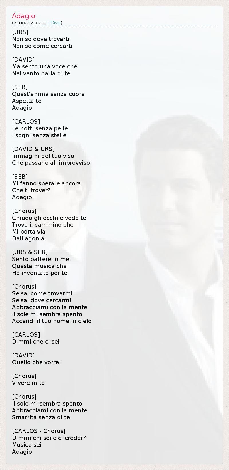 Это интересно:Самый успешный проект в сегменте поп-музыки с классическим вокалом4 миллиона проданных альбомов"Вчетвером они звучат как целая оперная труппа. Это Queen без гитар"New York TimesIl Divo - одно из самых ярких и свежих явлений в популярной музыке последних лет. Четверо одаренных молодых людей, исполняющих оперные арии, песни Тони Брекстон, Фрэнка Синатра и Энио Мориконне, продали... продолжение