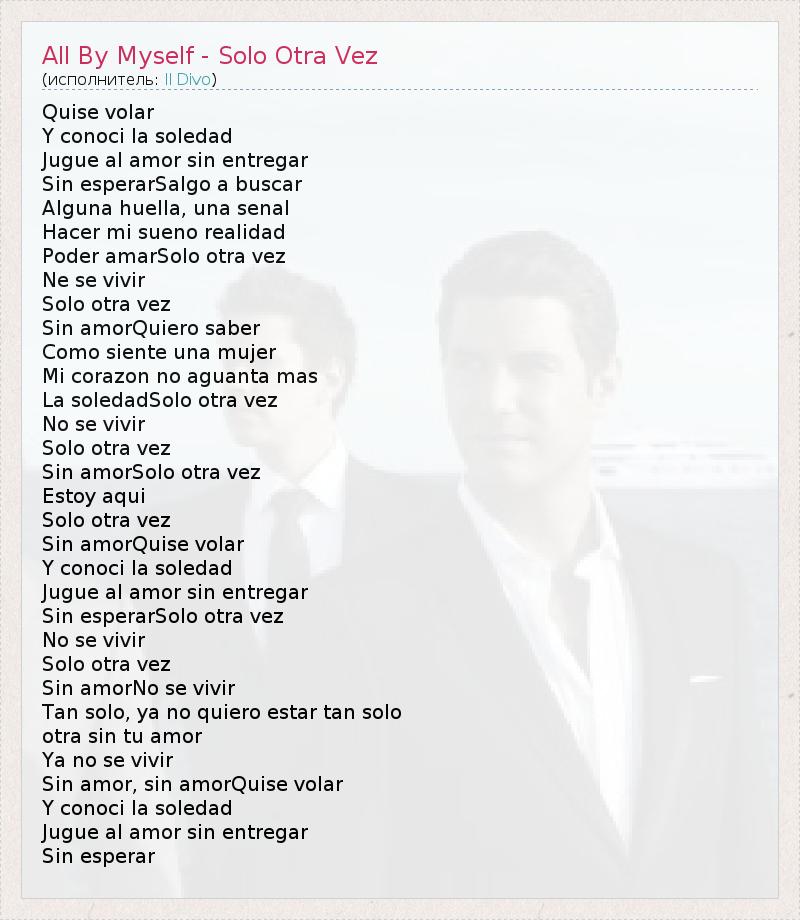 А как ты думаешь, о чем песня "All By Myself - Solo Otra Vez" ?