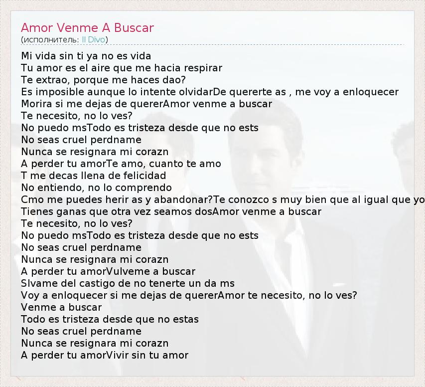 А как ты думаешь, о чем песня "Amor Venme A Buscar" ?
