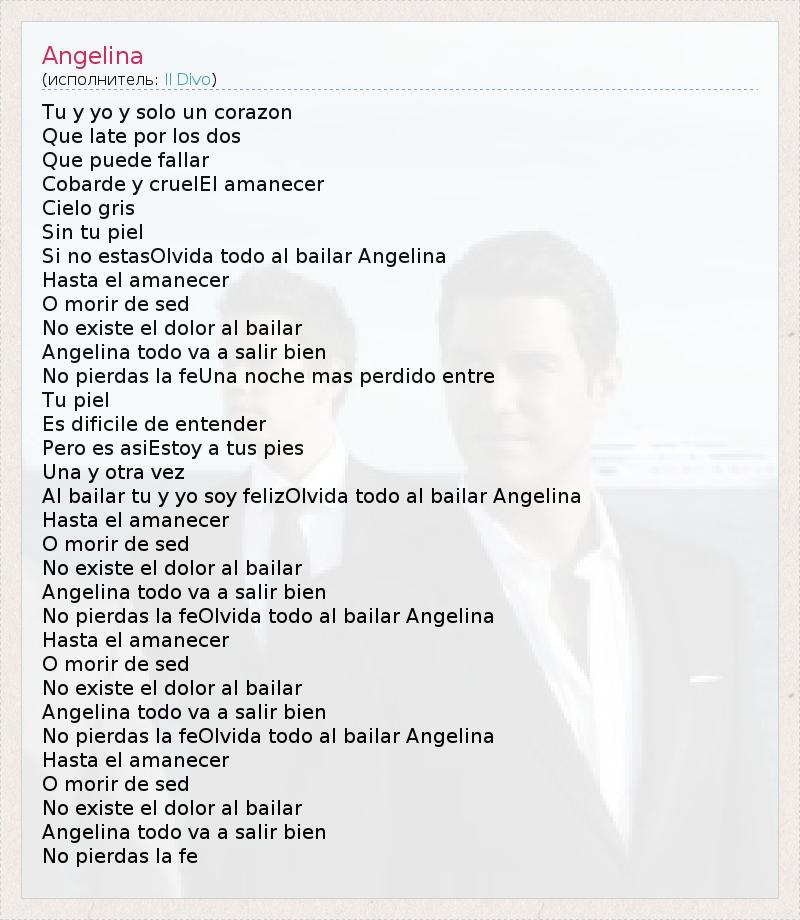 Al bailar tu y yo soy felizOlvida todo al bailar Angelina