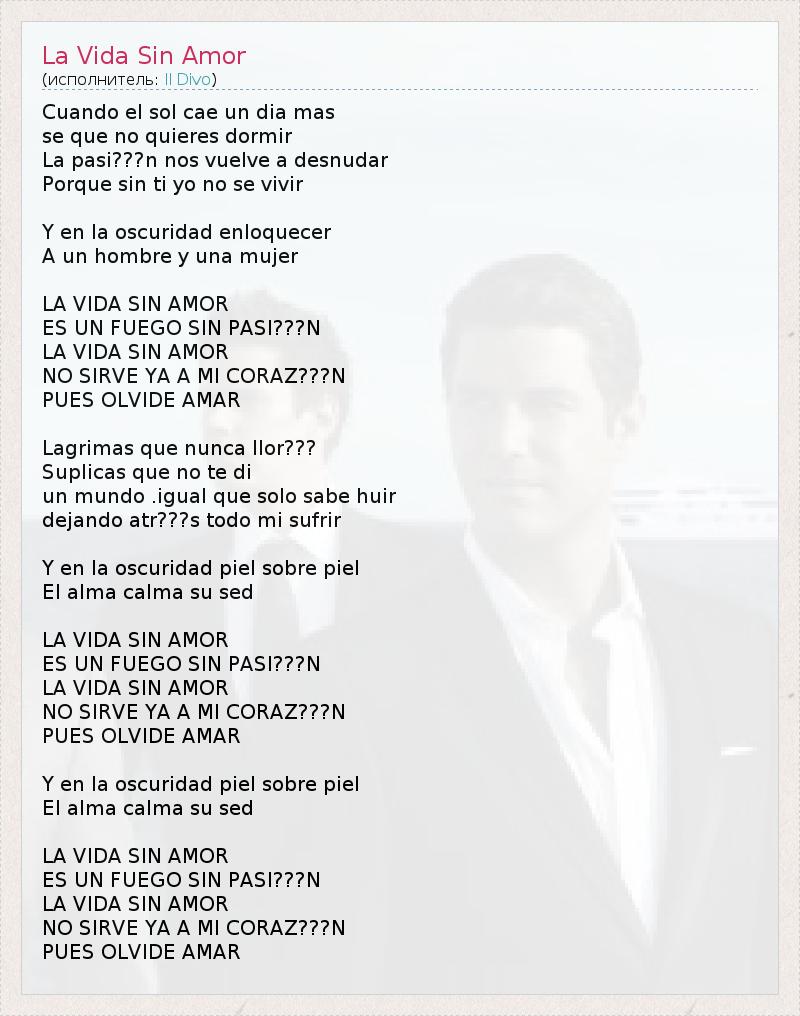 А как ты думаешь, о чем песня "La Vida Sin Amor" ?