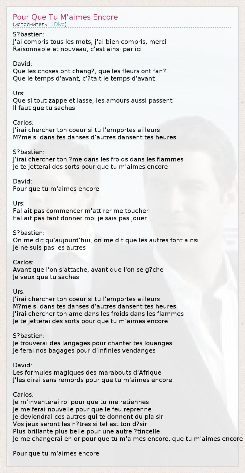 А как ты думаешь, о чем песня "Pour Que Tu M'aimes Encore" ?