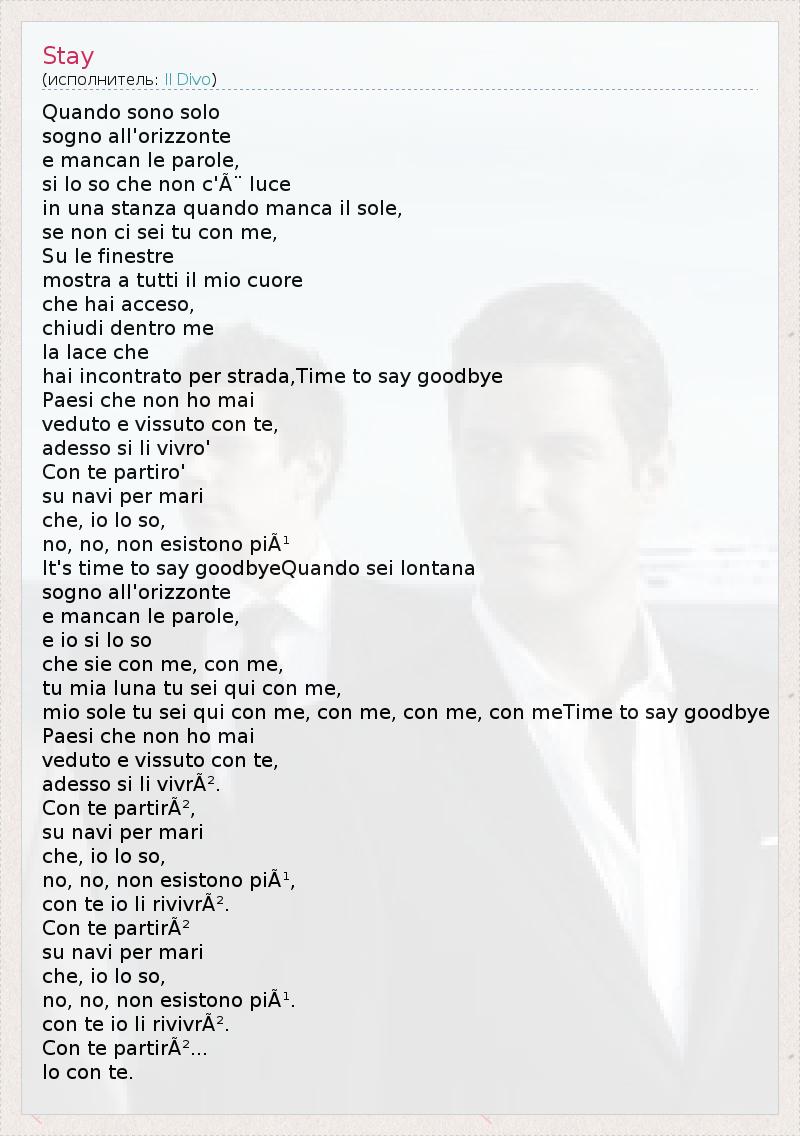 mio sole tu sei qui con me, con me, con me, con meTime to say goodbye