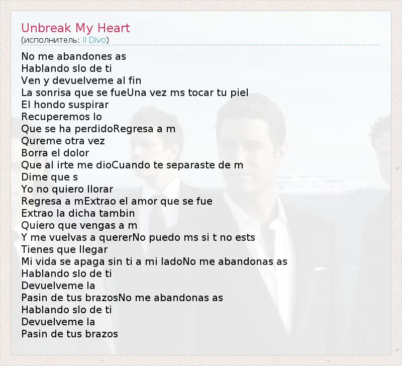 А как ты думаешь, о чем песня "Unbreak My Heart" ?