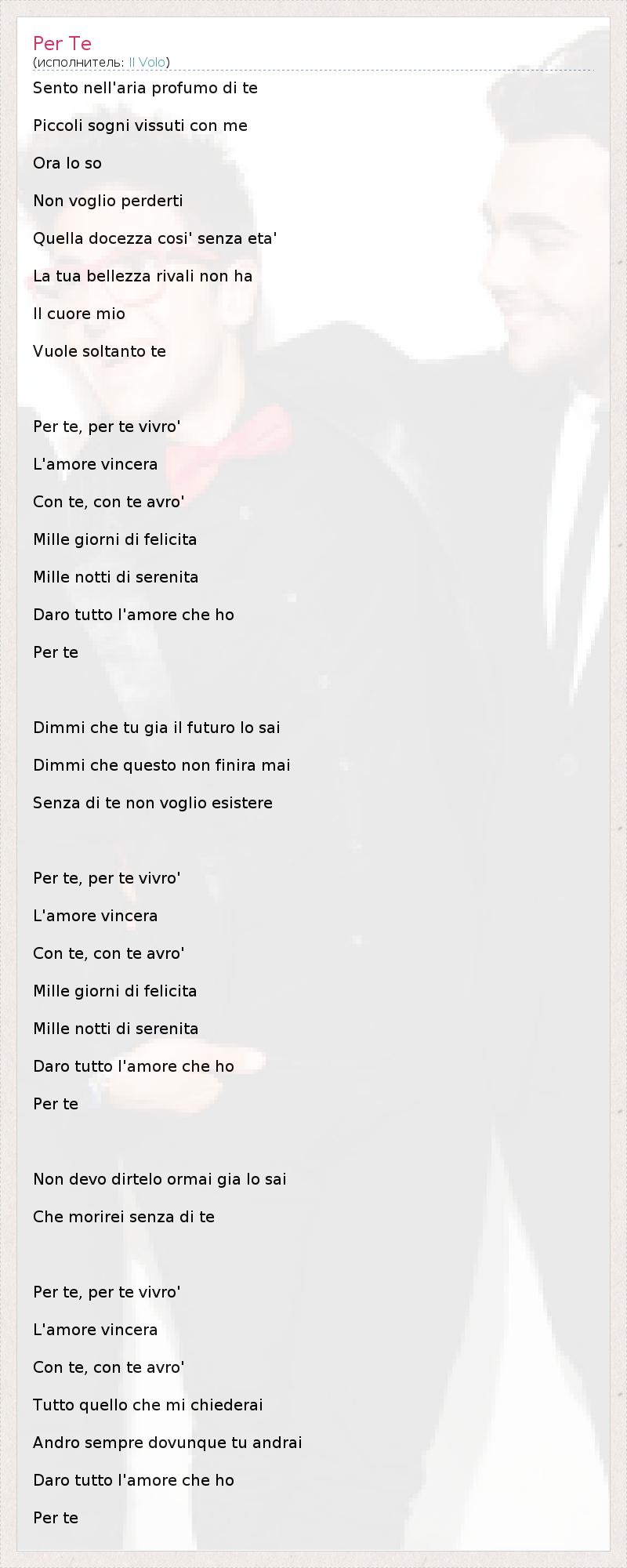 А как ты думаешь, о чем песня "Per Te" ?