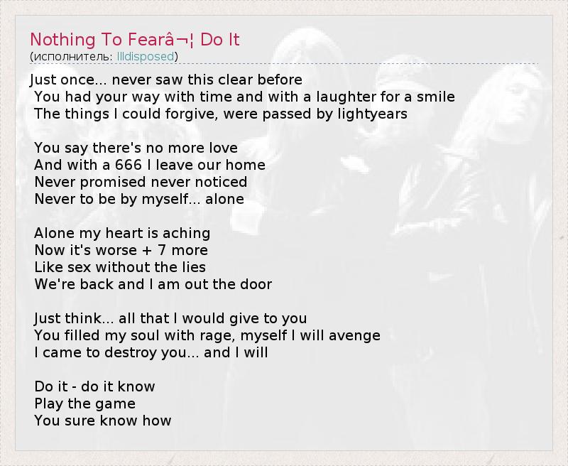 ГлавнаяИсполнителиIlldisposedNothing To Fear⬦ Do It