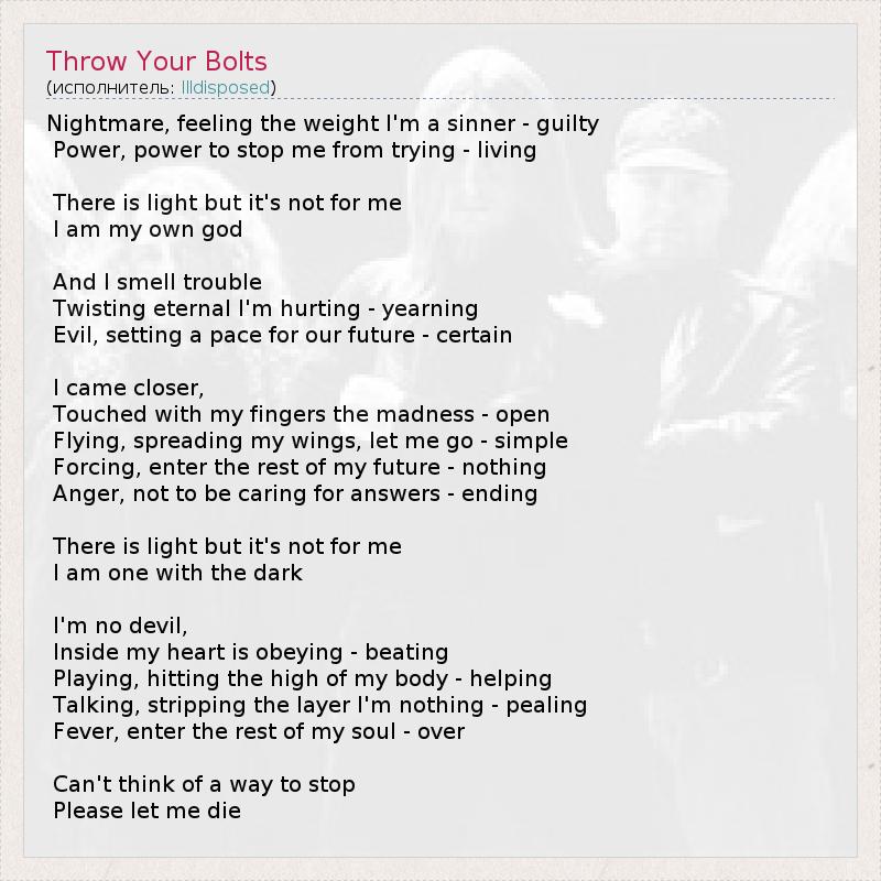 А как ты думаешь, о чем песня "Throw Your Bolts" ?
