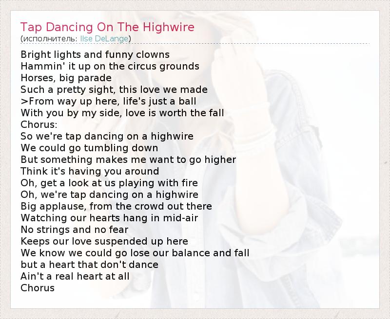 А как ты думаешь, о чем песня "Tap Dancing On The Highwire" ?