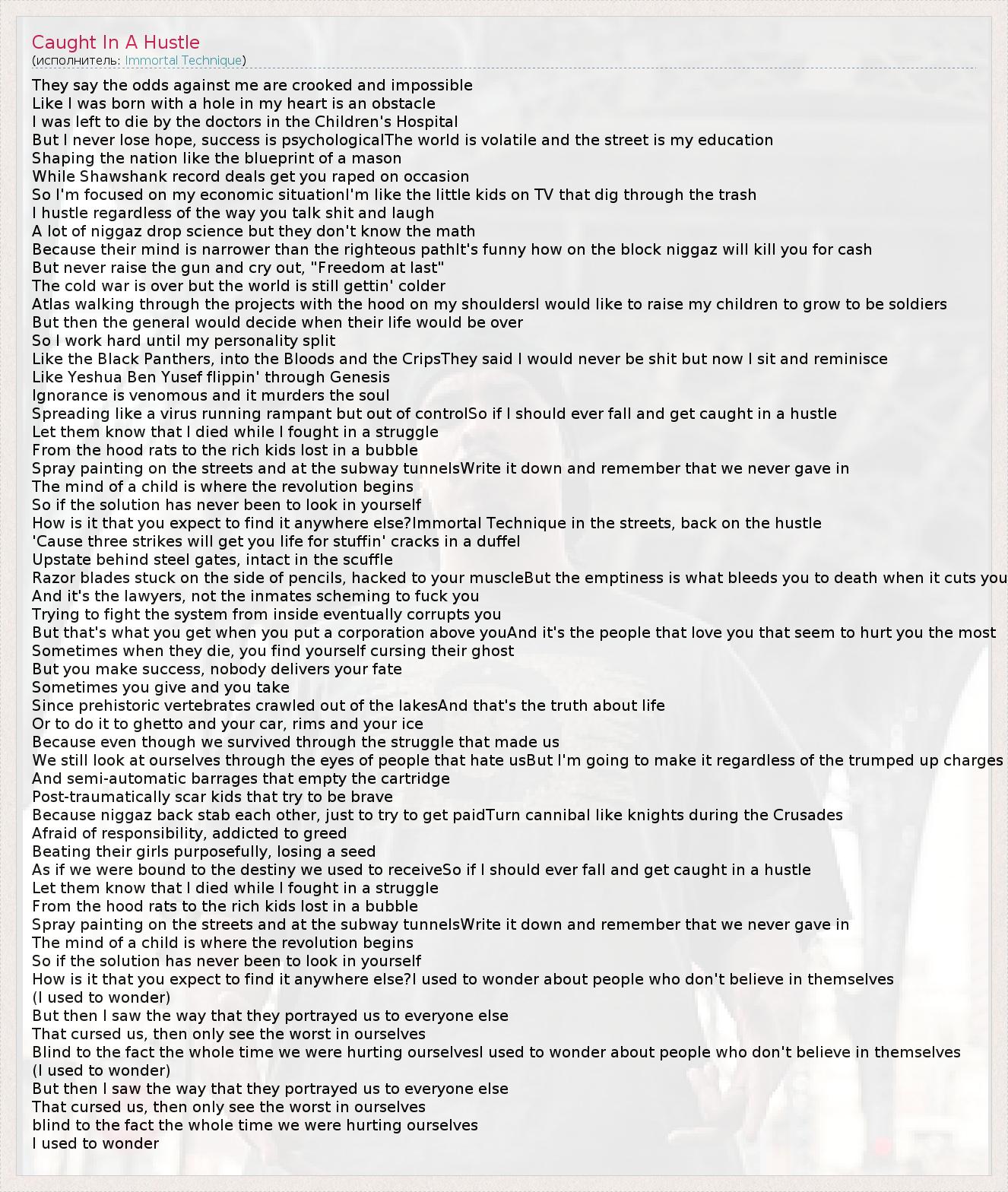 А как ты думаешь, о чем песня "Caught In A Hustle" ?