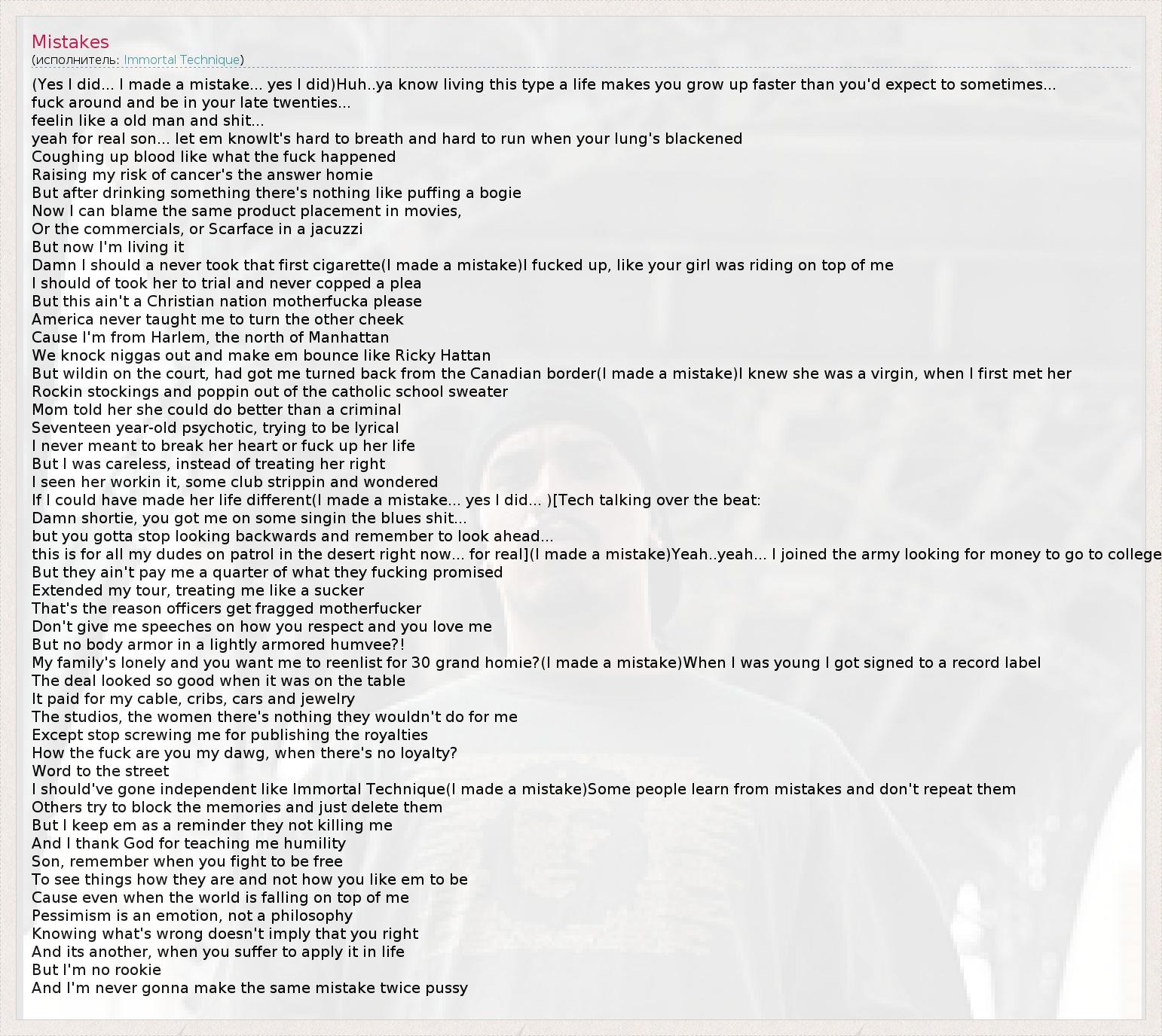 I should've gone independent like Immortal Technique(I made a mistake)Some people learn from mistakes and don't repeat them