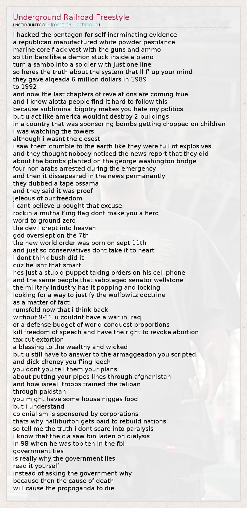 ГлавнаяИсполнителиImmortal TechniqueUnderground Railroad Freestyle