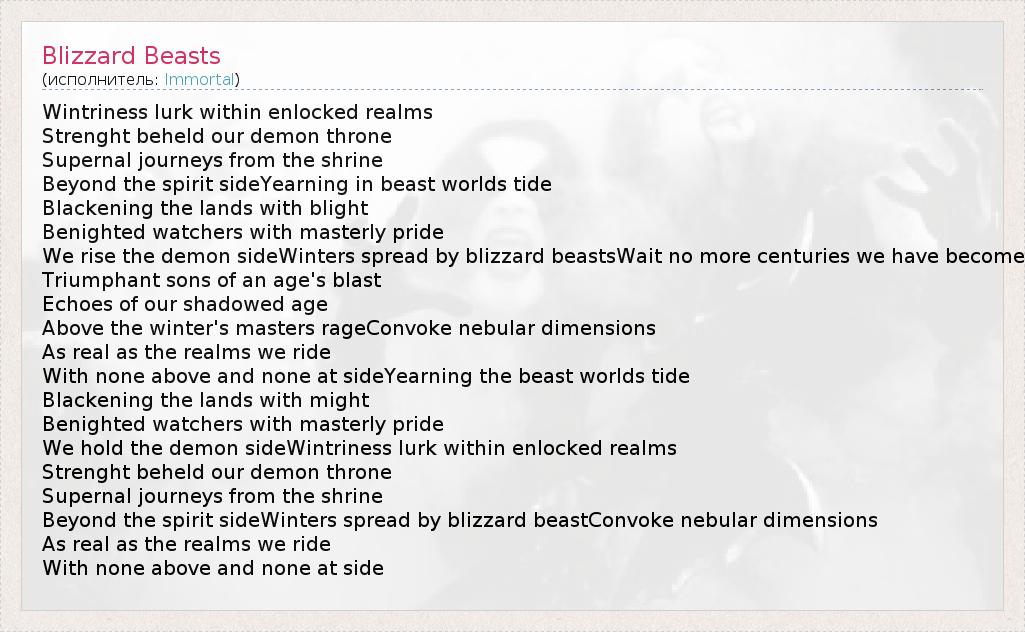 А как ты думаешь, о чем песня "Blizzard Beasts" ?