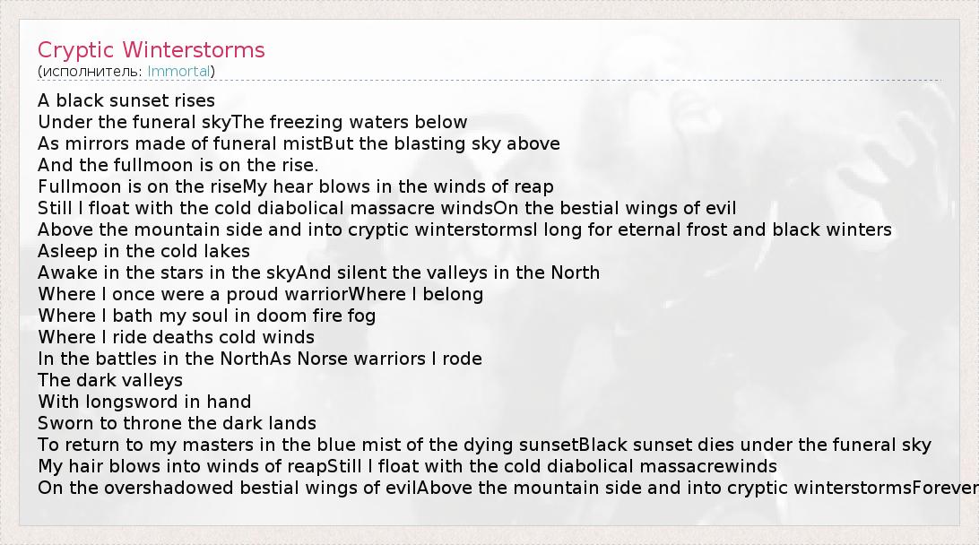 А как ты думаешь, о чем песня "Cryptic Winterstorms" ?