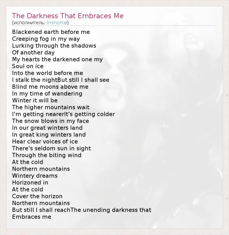 ГлавнаяИсполнителиImmortalThe Darkness That Embraces Me