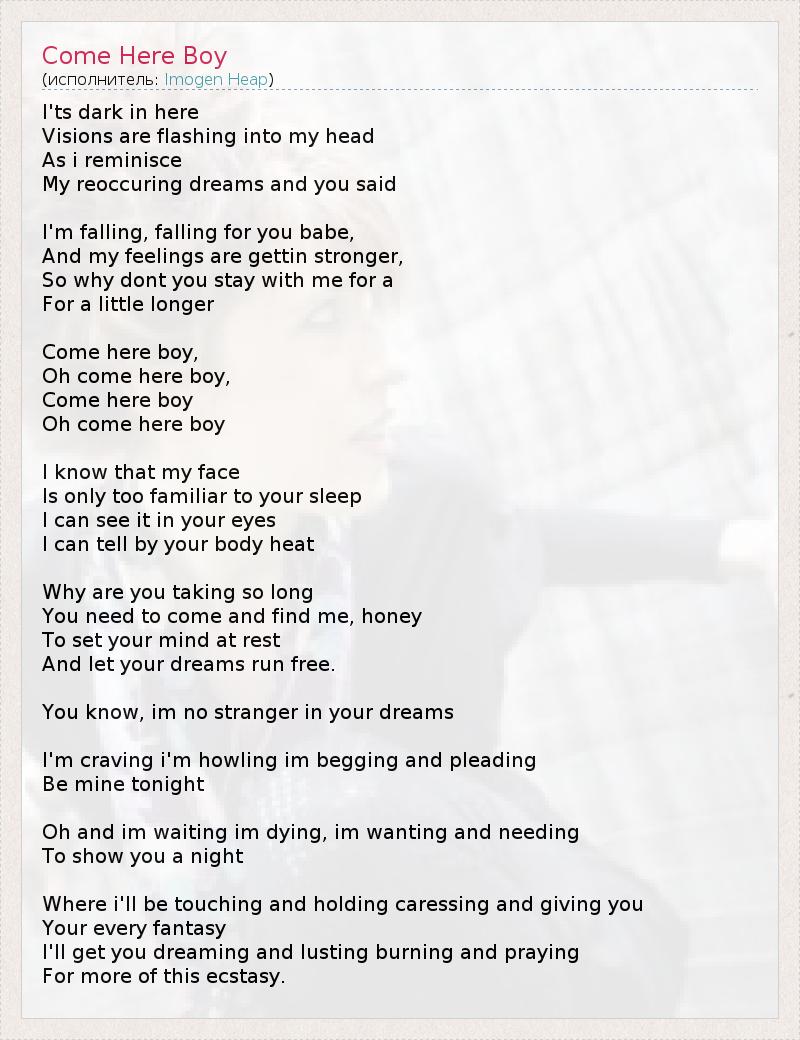 А как ты думаешь, о чем песня "Come Here Boy" ?