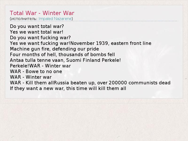 А как ты думаешь, о чем песня "Total War - Winter War" ?