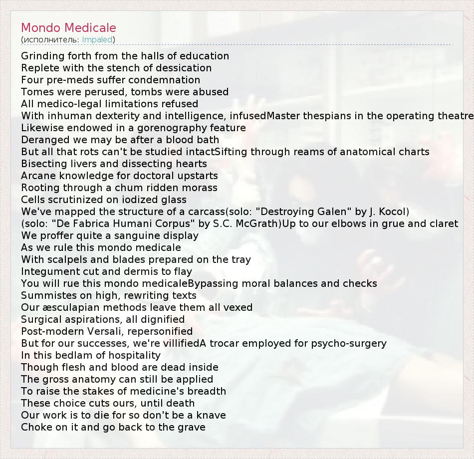 А как ты думаешь, о чем песня "Mondo Medicale" ?