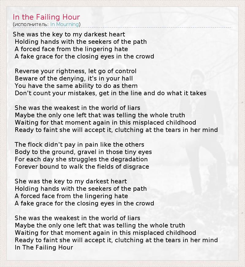 А как ты думаешь, о чем песня "In the Failing Hour" ?