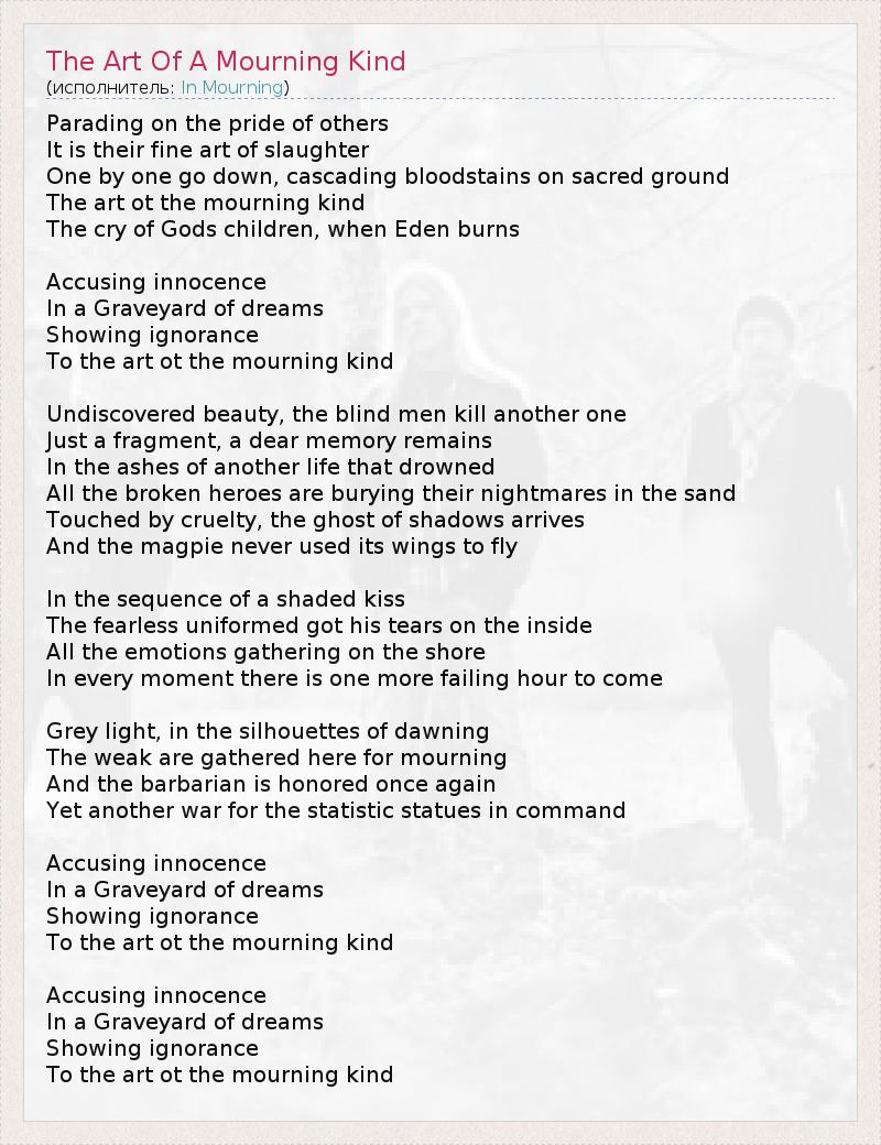 А как ты думаешь, о чем песня "The Art Of A Mourning Kind" ?