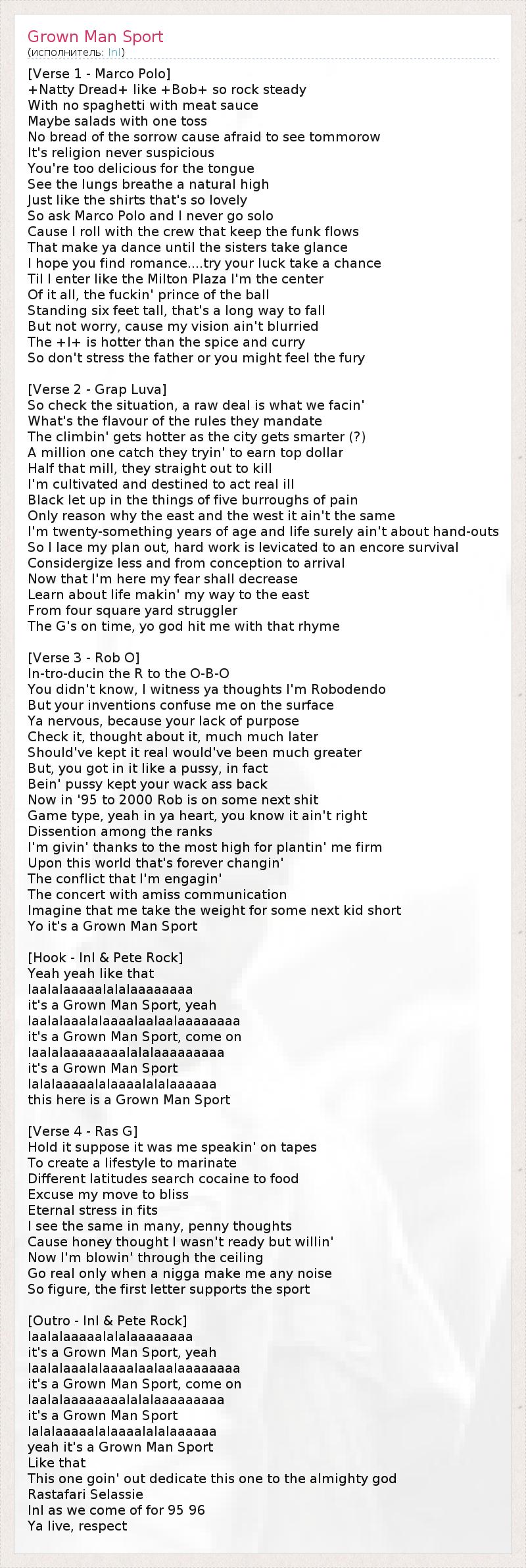 А как ты думаешь, о чем песня "Grown Man Sport" ?