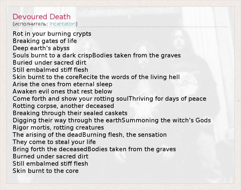 А как ты думаешь, о чем песня "Devoured Death" ?