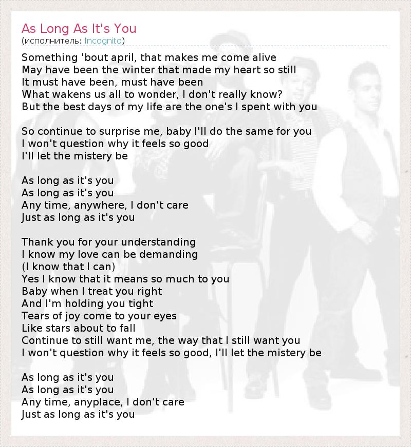 А как ты думаешь, о чем песня "As Long As It's You" ?