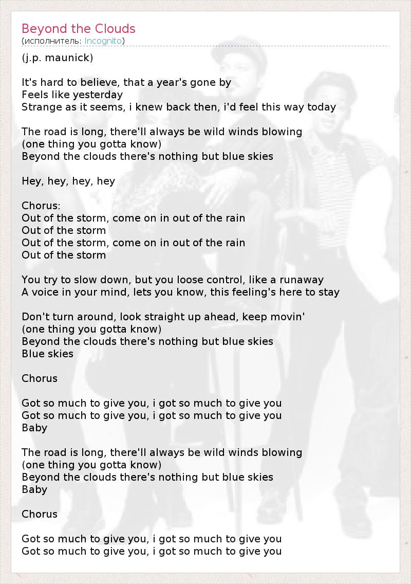 А как ты думаешь, о чем песня "Beyond the Clouds" ?