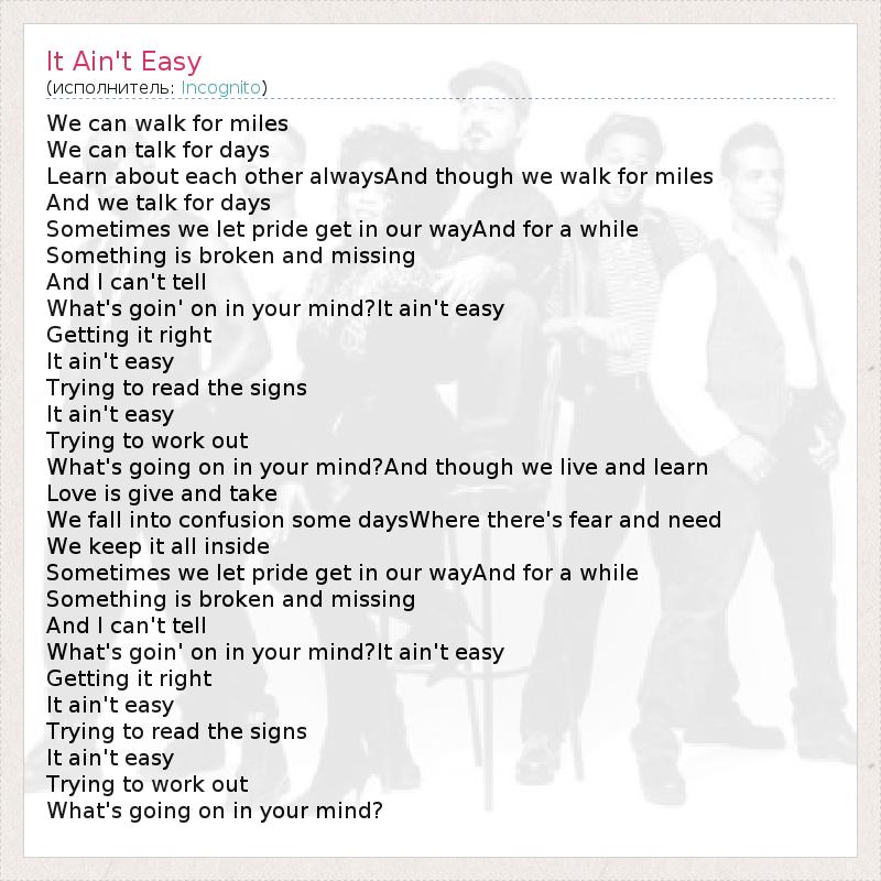 А как ты думаешь, о чем песня "It Ain't Easy" ?