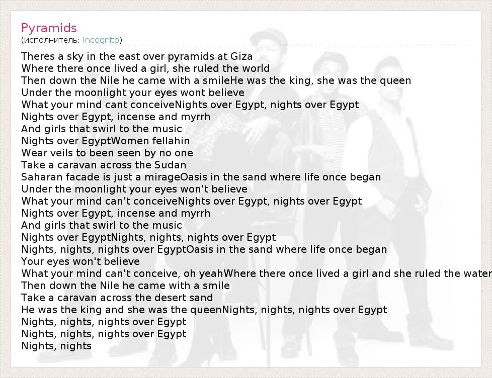 What your mind cant conceiveNights over Egypt, nights over Egypt