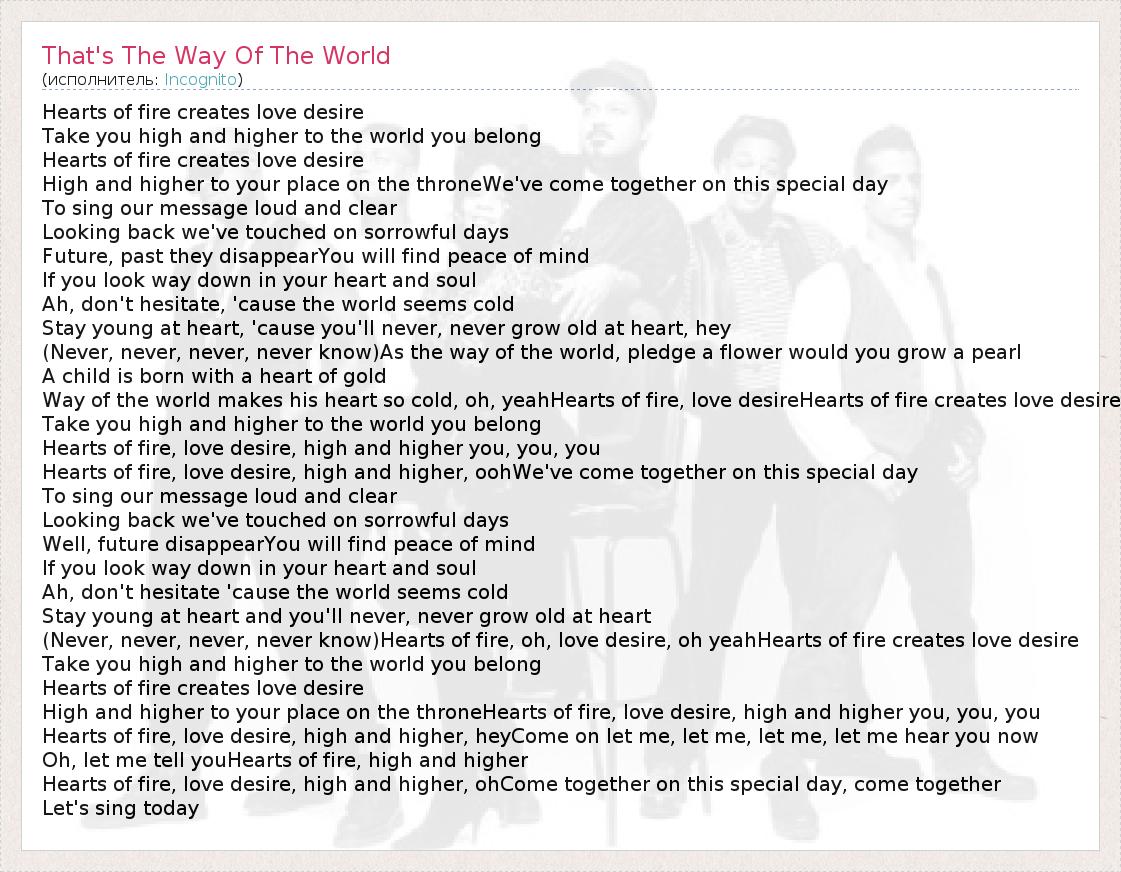 А как ты думаешь, о чем песня "That's The Way Of The World" ?