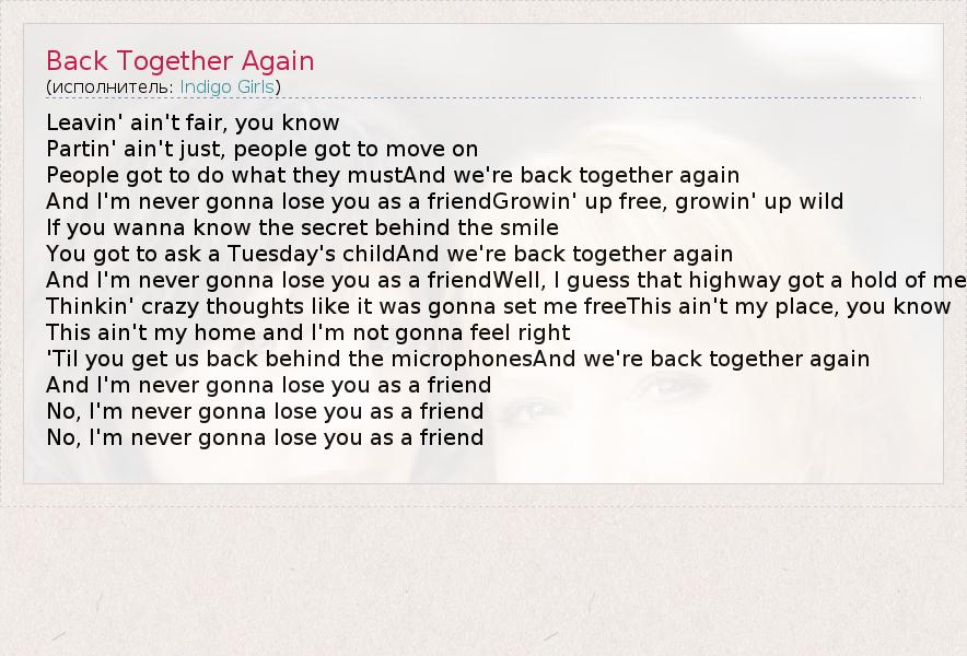 А как ты думаешь, о чем песня "Back Together Again" ?