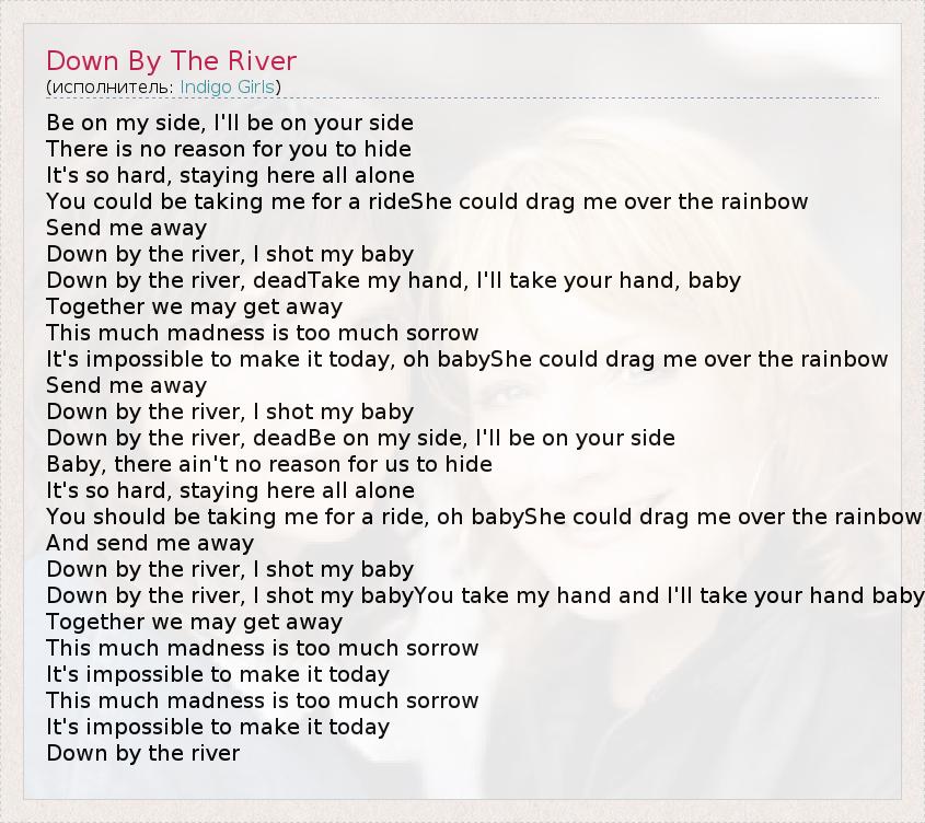 Down by the river, deadBe on my side, I'll be on your side