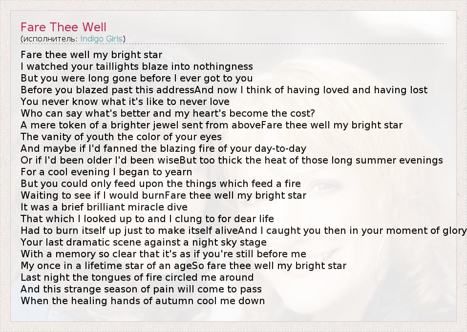 А как ты думаешь, о чем песня "Fare Thee Well" ?