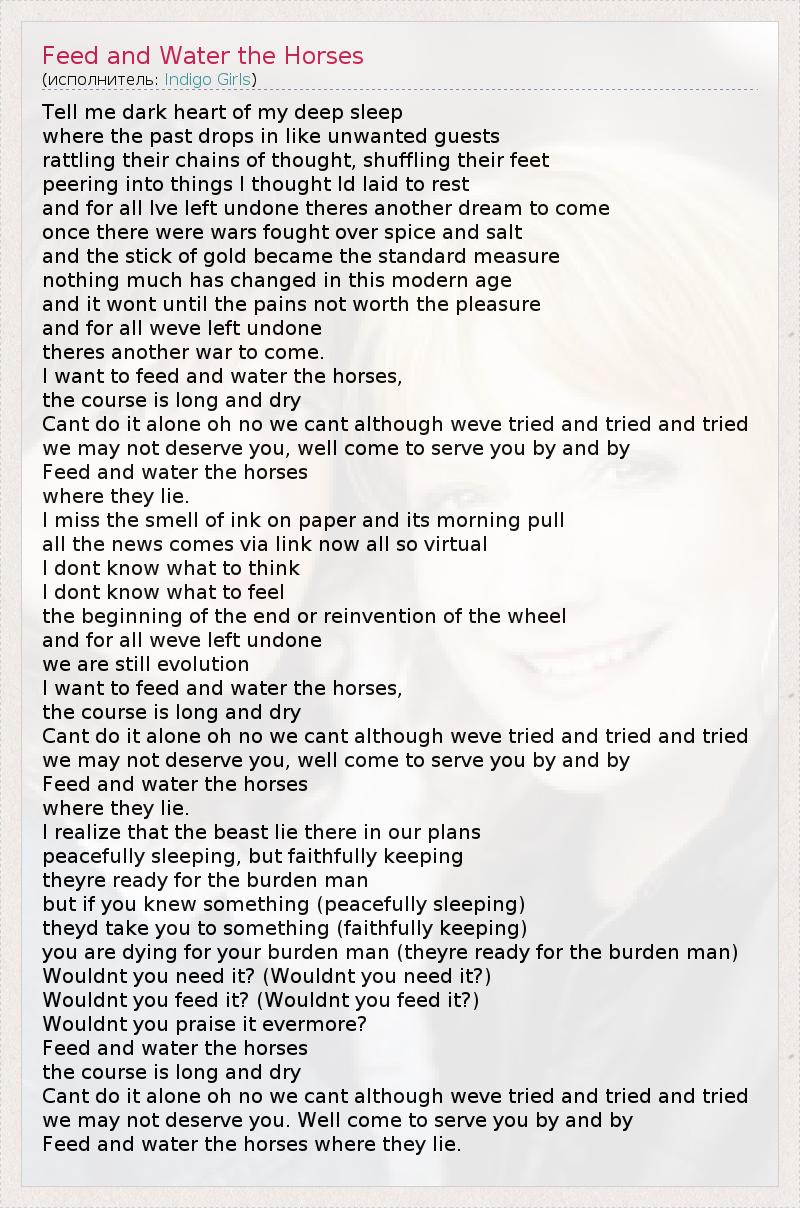 А как ты думаешь, о чем песня "Feed and Water the Horses" ?