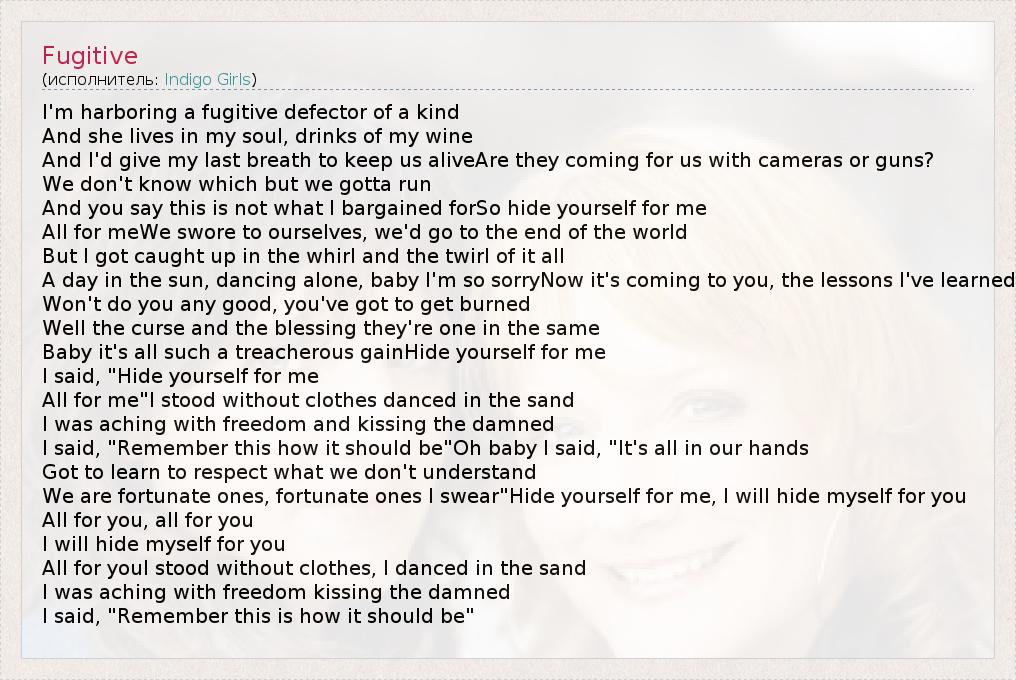 We are fortunate ones, fortunate ones I swear"Hide yourself for me, I will hide myself for you