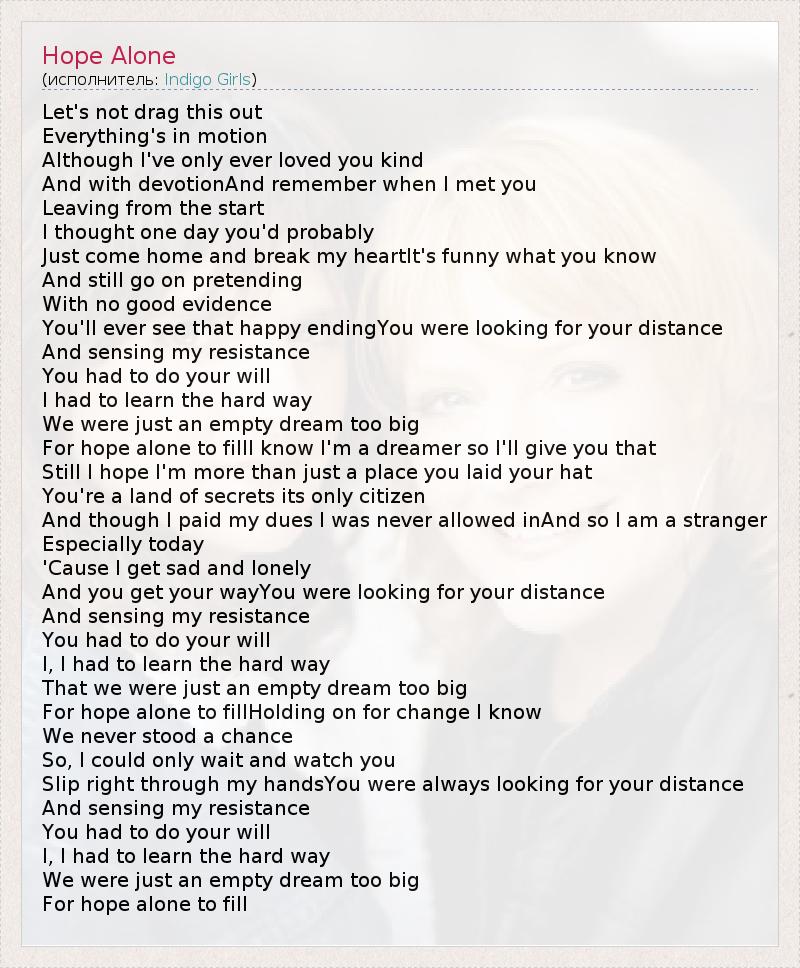 А как ты думаешь, о чем песня "Hope Alone" ?