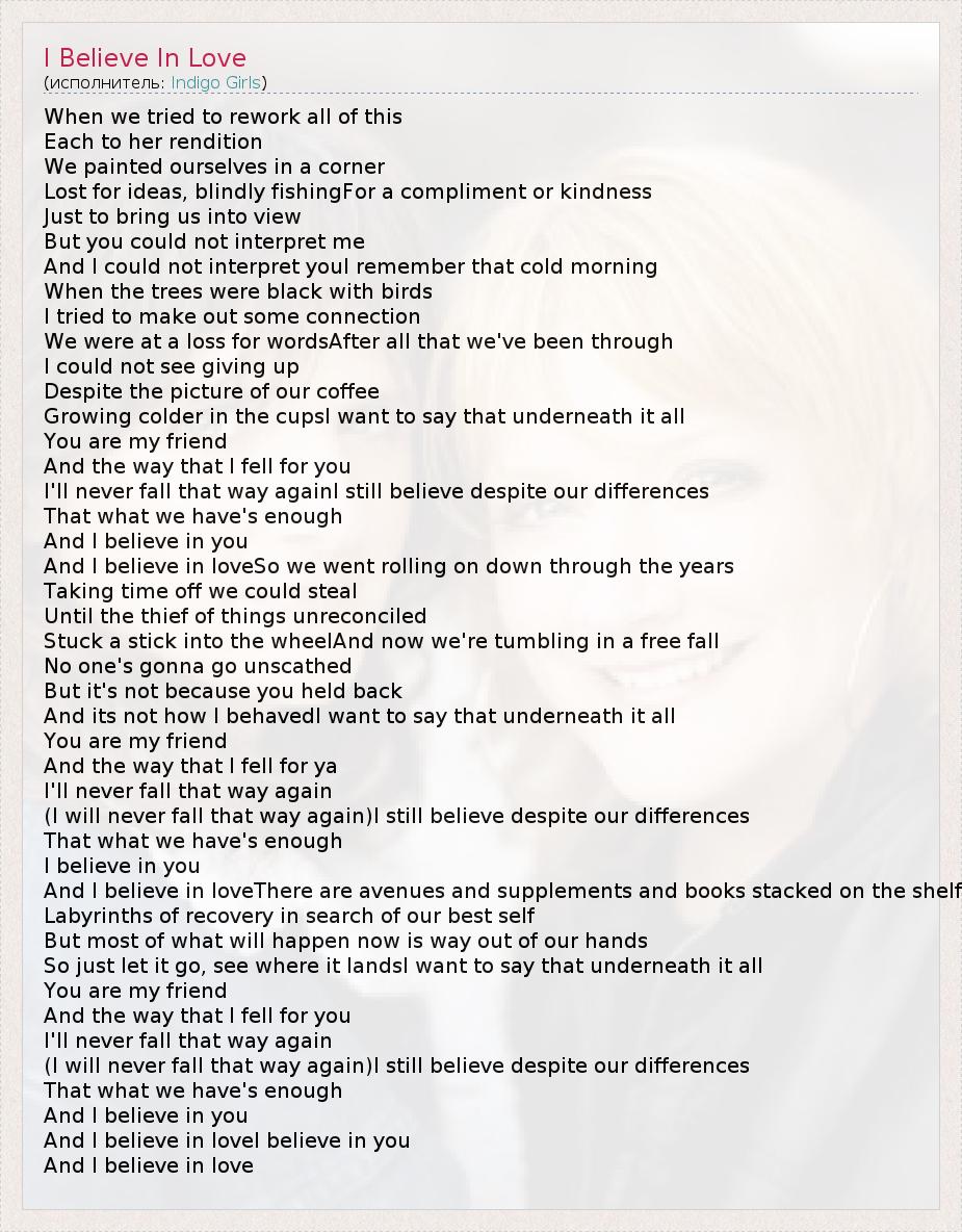 And I believe in loveI believe in you