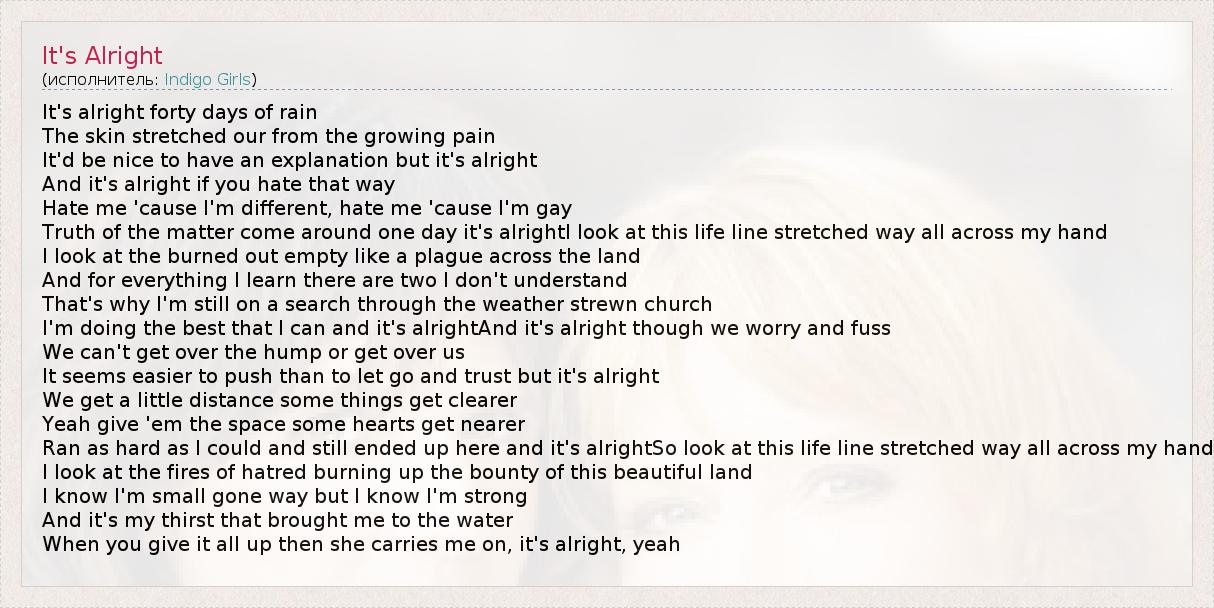 А как ты думаешь, о чем песня "It's Alright" ?