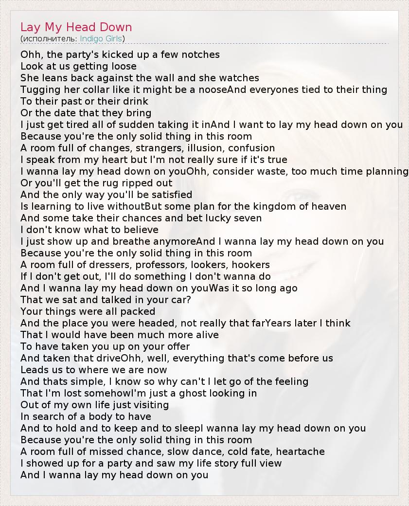 А как ты думаешь, о чем песня "Lay My Head Down" ?