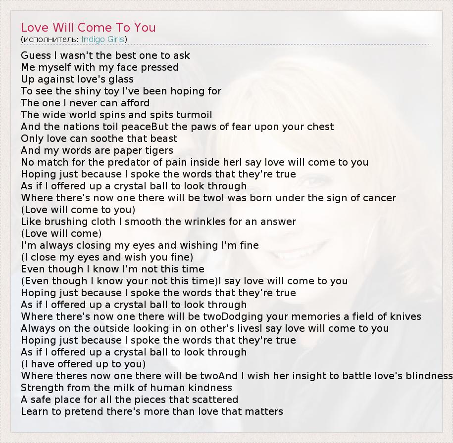 А как ты думаешь, о чем песня "Love Will Come To You" ?