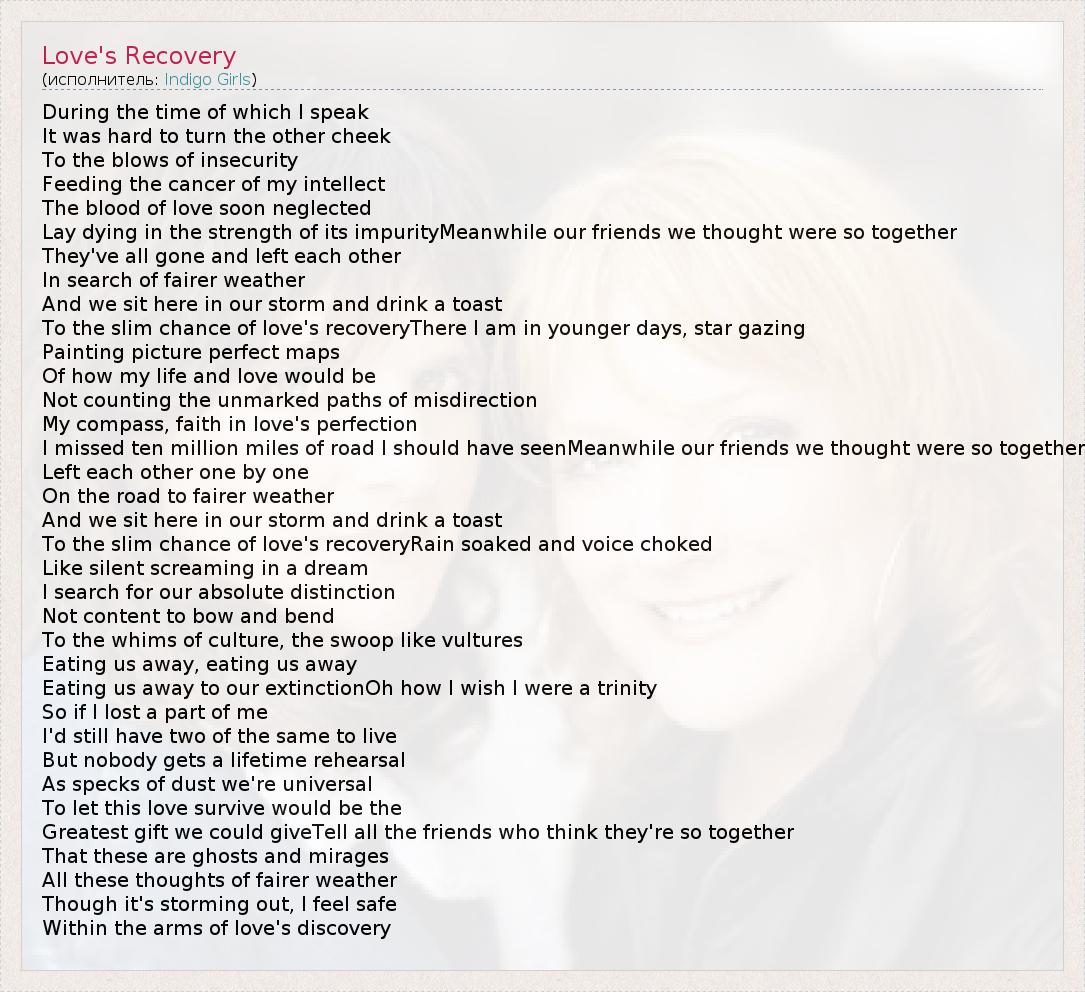 А как ты думаешь, о чем песня "Love's Recovery" ?