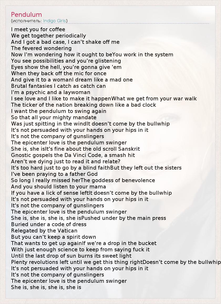 Это интересно:Indigo Girls это Amy Ray и Emily Saliers. Они встретились на игровой площадке начальной школы в Дэкетуре, штат Джоржия и выступают вместе со школы. Они записались на Epic Records в 1989 и получили грэмми за лучшее фолк-альбом в том же году (за одноимённый релиз). Их хитами были такие песни, как "Galileo", "Closer... продолжение
