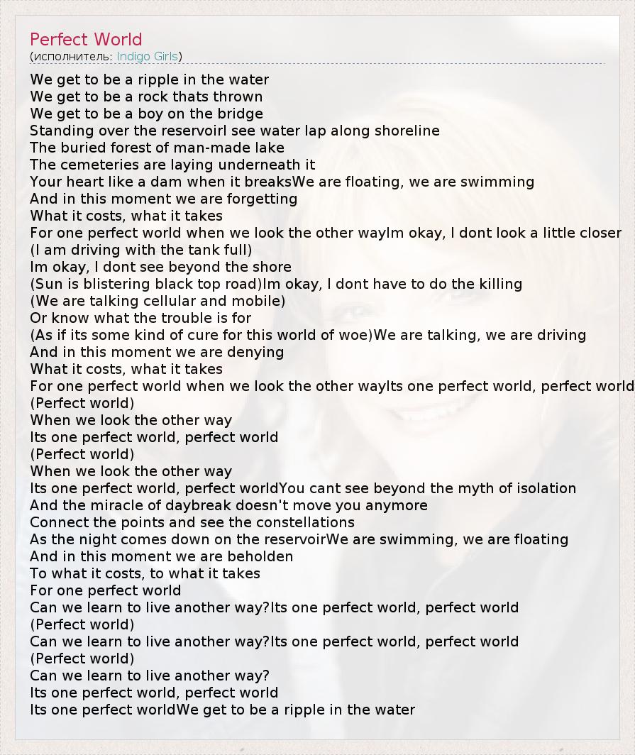 For one perfect world when we look the other wayIm okay, I dont look a little closer