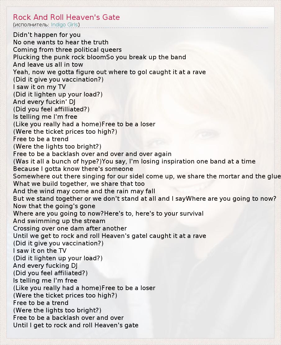 ГлавнаяИсполнителиIndigo GirlsRock And Roll Heaven's Gate