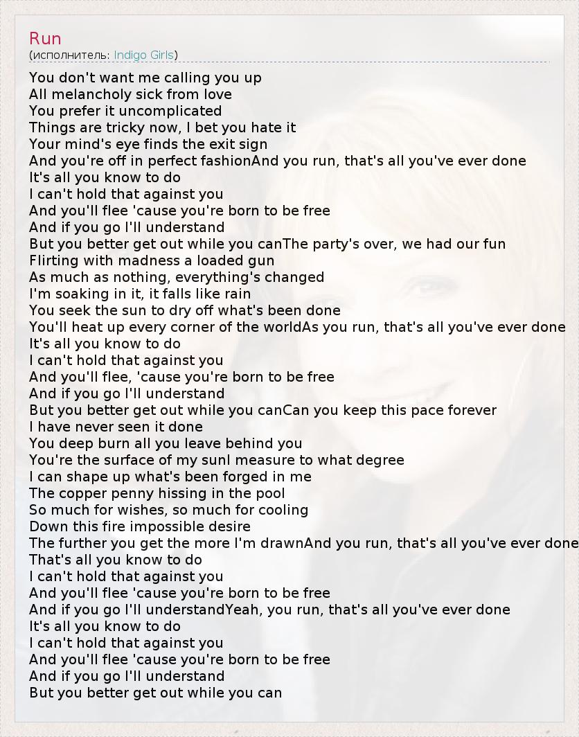 And you're off in perfect fashionAnd you run, that's all you've ever done