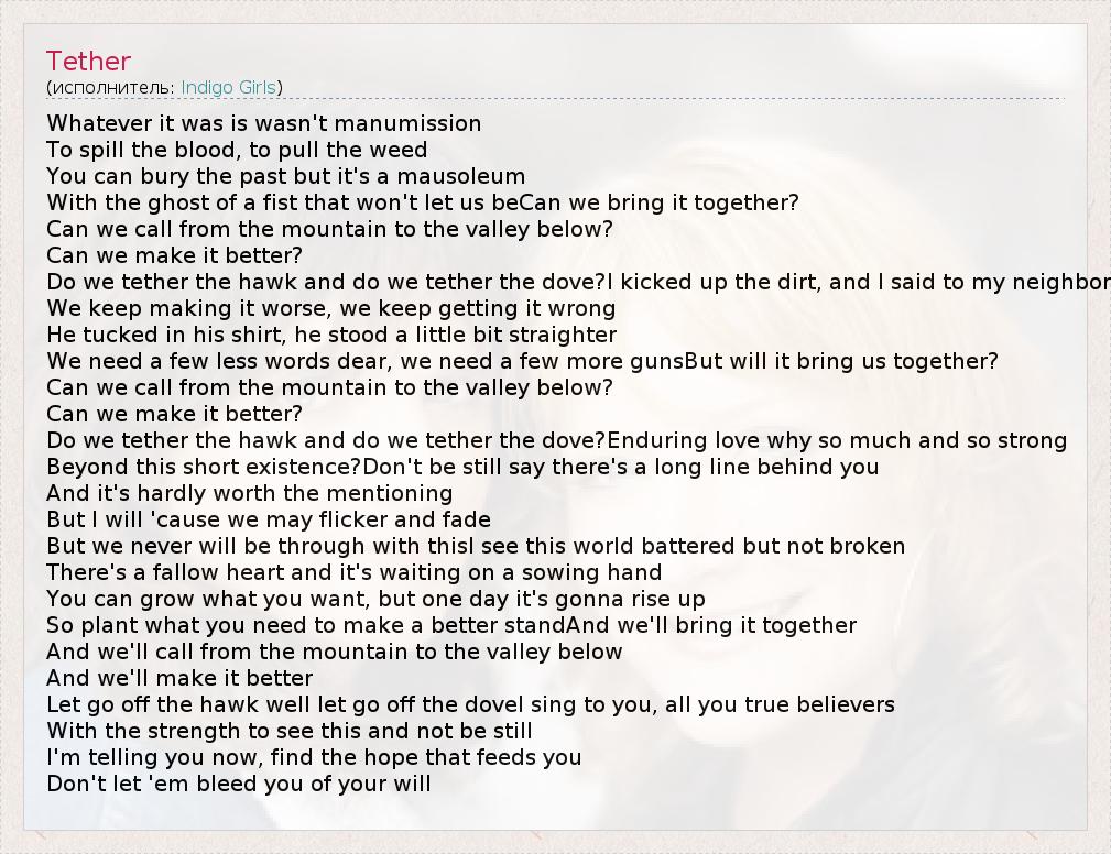 А как ты думаешь, о чем песня "Tether" ?
