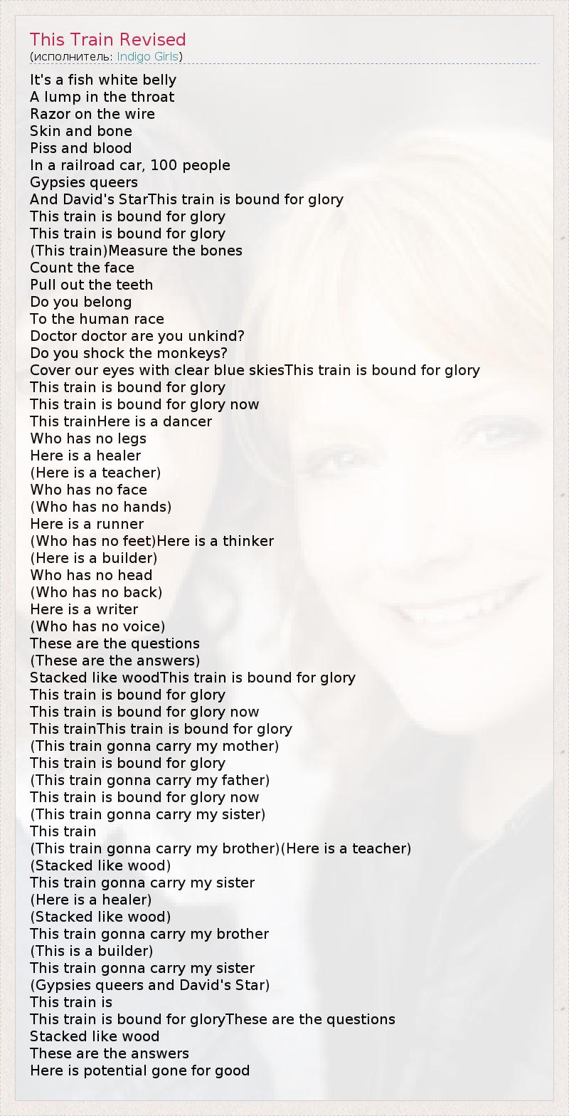 А как ты думаешь, о чем песня "This Train Revised" ?